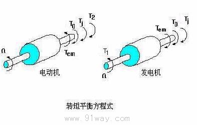 在發電機中,原動機的拖動轉矩為T1,其轉矩平衡方程式則為