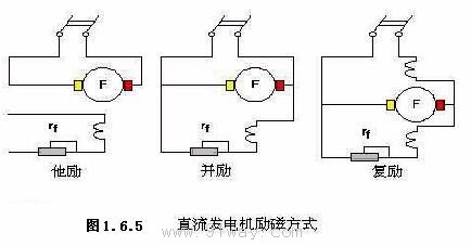 圖1.6.5常用他勵,并勵和復勵發電機的接線圖