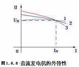 所以U0和If0之值就是表示上述兩種特性的曲線交點:A的坐標 并勵直流發電機的自勵(圖1.6.7) 2)并勵直流發電機自勵的三個條件 *電機必須有剩磁 *勵磁繞組并聯到電樞的極性必須正確 *勵磁回路中電阻小于rfc(稱為臨界值) (二)負載運行直流發電機的外特性(圖1.6.8)