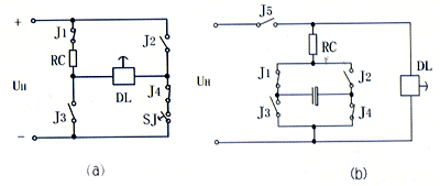 Rf-分壓電阻 C-電容 J.J1~J5-接觸器觸點 D1~D5整流二極管 RX-限流電阻 B-變壓器 Do-二極管 Ro-電阻 |