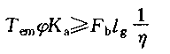 式中 Fem ——電磁鐵的吸力,N: Ha —— 銜鐵行程,mm; Ka——銜鐵行程利用系數(shù),通常在0.8~0.85之間; Fb——制動瓦壓在制動輪上的壓力 N; lg——調(diào)整好的制動瓦與制動輪之間的空隙,mm; η——制動裝置杠桿系統(tǒng)的效率,一般為0.9—0.95。