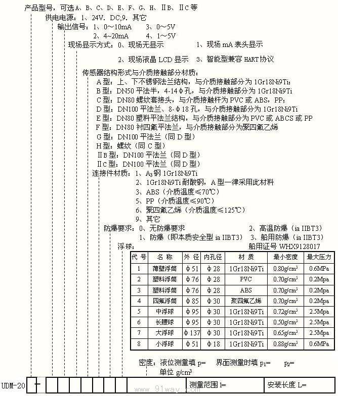 | 產(chǎn)品名稱: | UDM-20系列浮球式液位變送器 | |||||