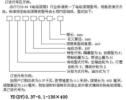四、YD型油冷式電動滾筒訂貨說明