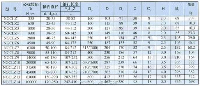 NGCLZ型帶制動輪接中間軸鼓形齒式聯軸器基本參數與主要尺寸