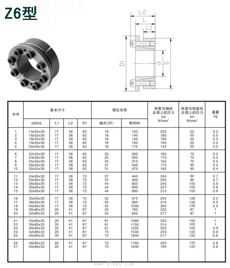 | 產品名稱: | Z6型脹緊聯結套 | |||||