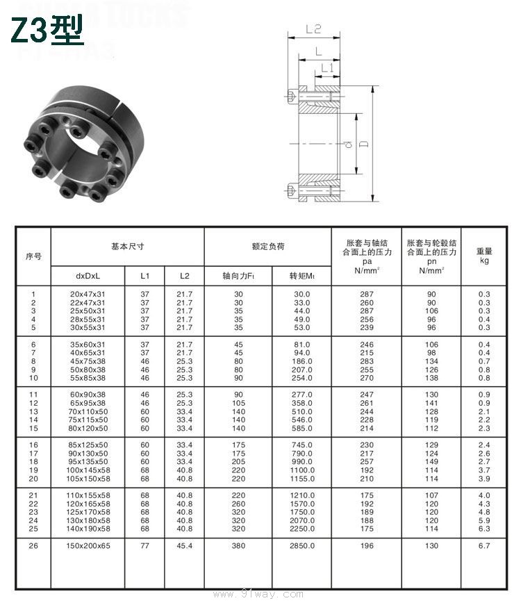| 產品名稱: | Z3型脹緊聯結套 | |||||