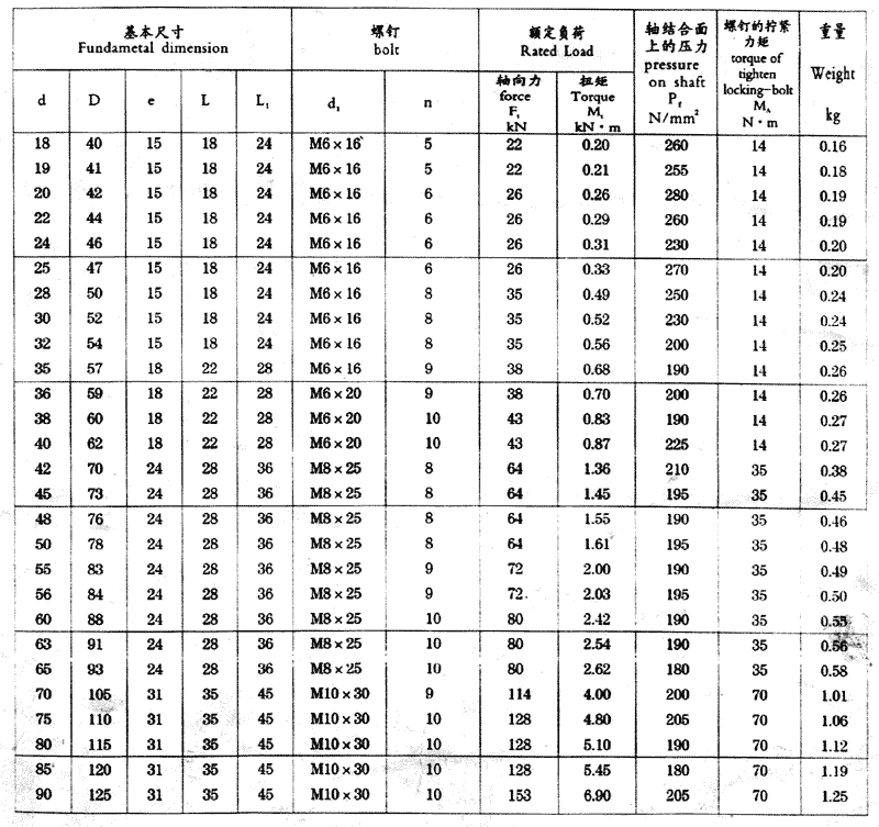Z22型脹緊聯(lián)結(jié)套的基本尺寸和參數(shù)