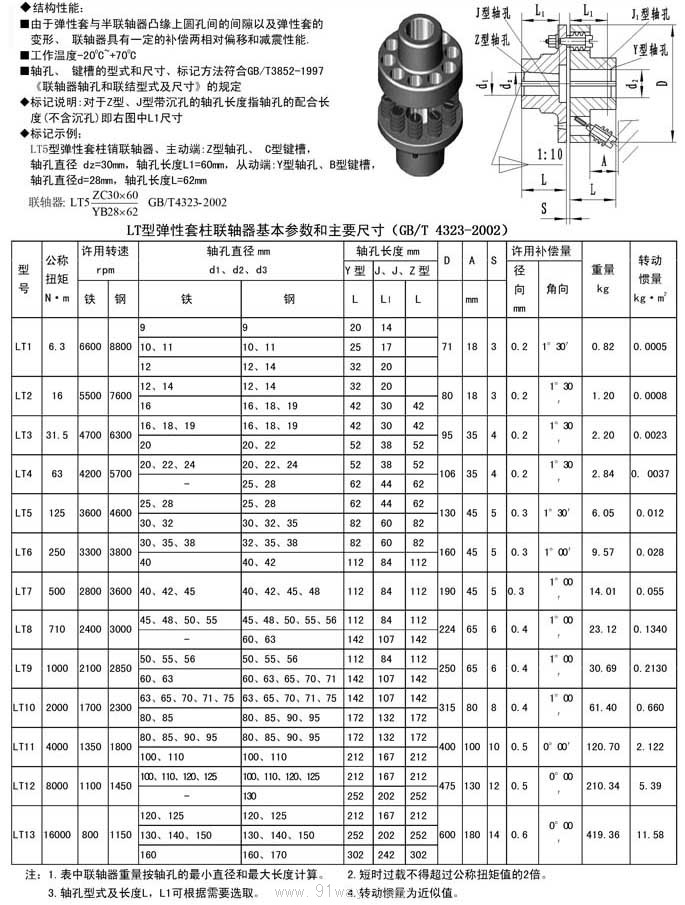 LT型彈性套柱銷聯軸器基本參數和主要尺寸