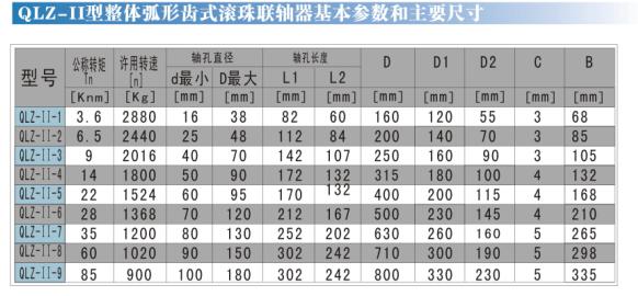 QLZ—Ⅱ型法蘭式帶制動輪弧形齒滾珠聯軸器基本參數和主要尺寸