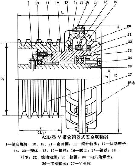 ASD型V帶輪鋼砂式安全聯軸器基本參數和主要尺寸(JB/T5986-92)