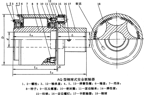 | 產品名稱: | AQ型鋼球式安全聯軸器 | |||||