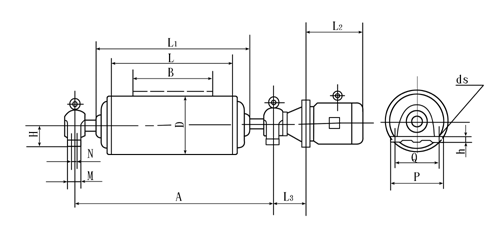 YZW型外裝式電動滾筒外形及安裝尺寸