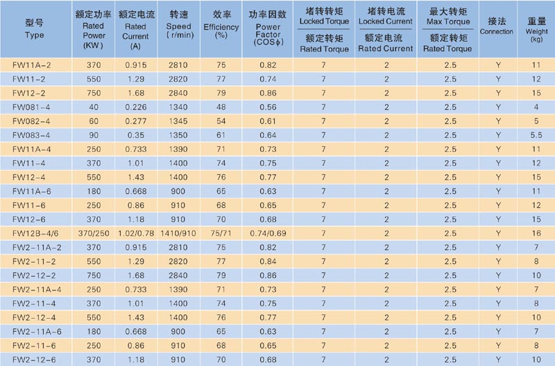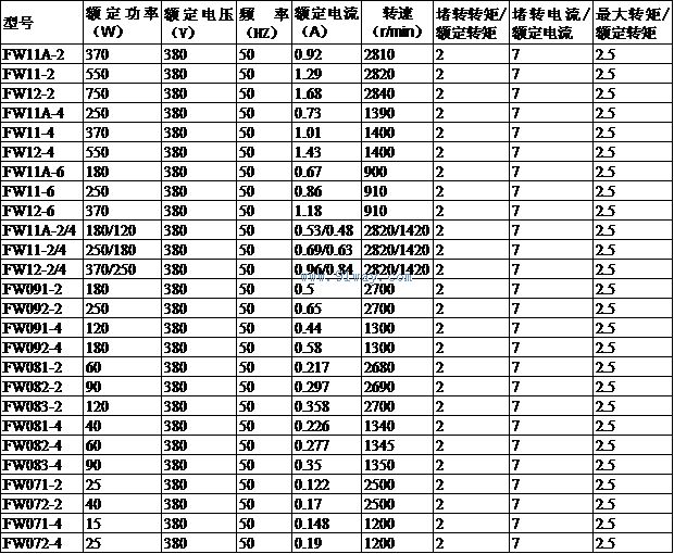 型號規(guī)格: FW、FW2系列三相異步電動機