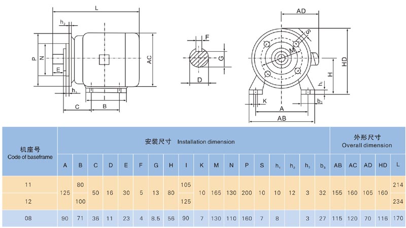 4.T2型機座無底腳,端蓋上有凸緣,無尺寸A、B、C、AB、K、H、b3.