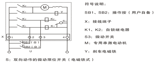 K:分勵脫扣器內部與線圈串聯的微動開關常閉觸頭,當斷路器分閘后,該觸頭自行斷開,合閘時閉合。