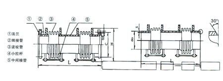 橫向小拉桿波紋補償器由兩段波紋管、中間接管及帶有限螺母的小拉桿等零件組成,它在吸收管系任意平面內的橫向位移,同時吸收軸向位移。小拉桿不能承受內壓推力。 安裝使用注意事項: 1、用戶使用時若不使用小拉桿,請在訂貨時注明。 2、用戶使用時若需要小拉桿,在安裝后務必將螺母松開并離天耳板(或撐板)一段距離(數值由由向補償量確定)。 3、若實際補償量大于樣本上的規定值(壽命≤1000次),產品在安裝后必須拆除小拉桿。 注:大于DN600的產品可定制加工,來圖來函可制作非標管徑。