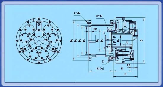 短園柱連接形式大通孔,彈簧夾緊,氣動松開,夾持精度高一臺設備一般同時裝配二臺卡盤使用適用于冶金、石油、化工、地質行業是數控管子加工機床配套的專用卡盤