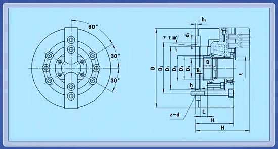 KT55T-IV二爪楔式高速大通孔動力卡盤與機床主軸直接連接,剛性好,精度高大通空,高轉速適用于加工各種異形工件