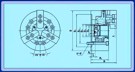 K55-IV楔式高速大通孔動力卡盤短園柱連接形式具有K55系列卡盤的各種性能大通空,適用于各種棒類工件的精加工