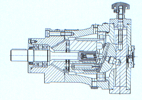 SCY14-1B型手動變量泵改變流量靠外力轉動調節手輪,當轉動變量機構的手輪時,通過調節螺桿帶動變量活塞上下移動,并通過銷軸改變變量頭的傾角,以達到變量目的。