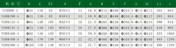 YGRM高溫爐用密封水冷電動(dòng)機(jī)技術(shù)參數(shù):