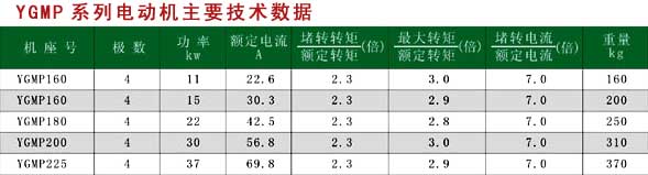 YGMP爐用密封變頻調(diào)速電動(dòng)機(jī)技術(shù)參數(shù):