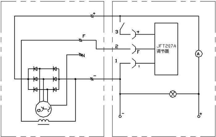 JF1000N-1硅整流發電機:額定功率1KW;額定電壓28V;額定電流36A;額定轉速2250r/min;絕緣等級E級;工作制S1。 配套12V135柴油機,外徑¢166 *320 JF1000N-1接線圖