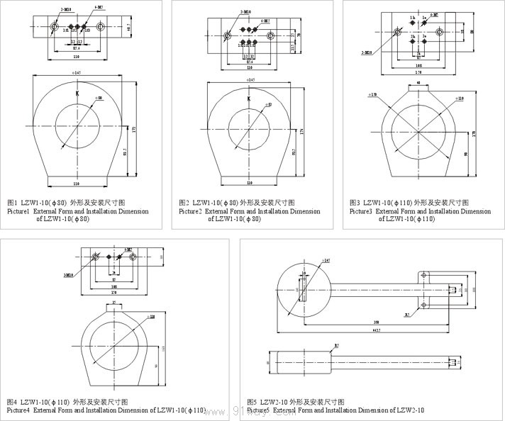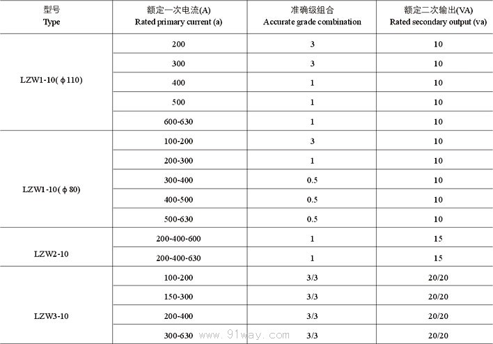 LZW1,2,3-10裝入式電流互感器技術參數 產品性能符合IEC標準和GB1208-1997《電流互感器》 額定電壓:10KV;額定頻率:50Hz;額定二次電流:5A(2A,1A)。