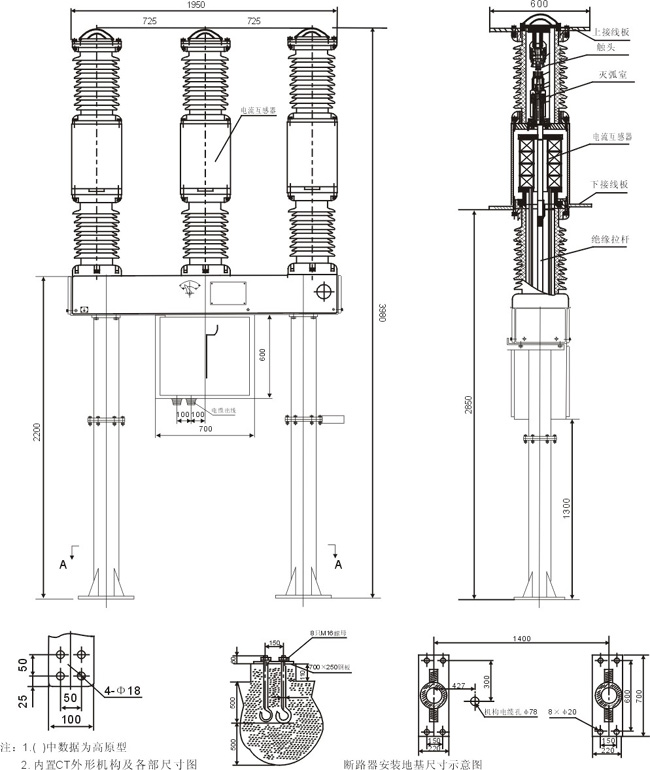 3.2 采用壓氣式熄滅電弧,開斷可靠,開斷容量大。
