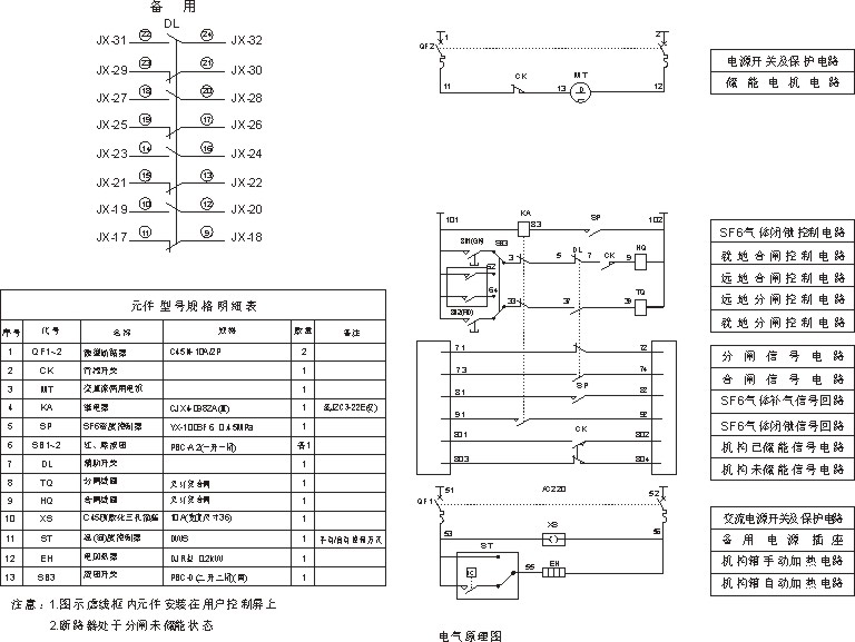斷路器配用CT14,CT35型彈簧扣去機構,其電原理圖,接線圖,主要技術參數,機構的安裝形式為中掛式.