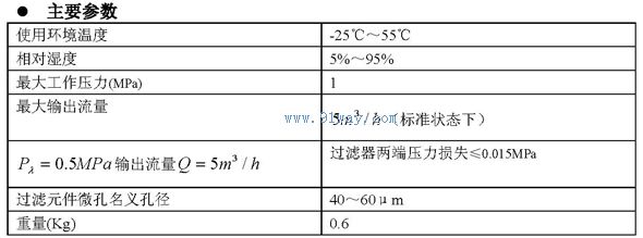 用于對(duì)壓縮空氣進(jìn)行凈化、濾去其中灰塵、微粒以及少量水分和油垢。作為供給各類氣動(dòng)儀表以及其它氣動(dòng)設(shè)備氣源的附屬裝置。