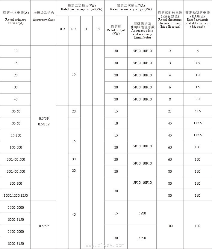 產品性能符合IEC標準和GB1208-1997《電流互感器》