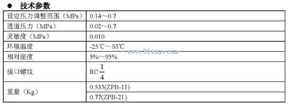 ZPB-11/21型氣動單雙向保位閥技術指標
