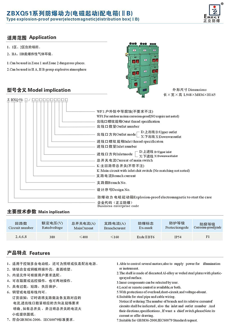 BXQ51系列防爆動力(電磁起動)配電箱(ⅡB)產品詳細說明:
