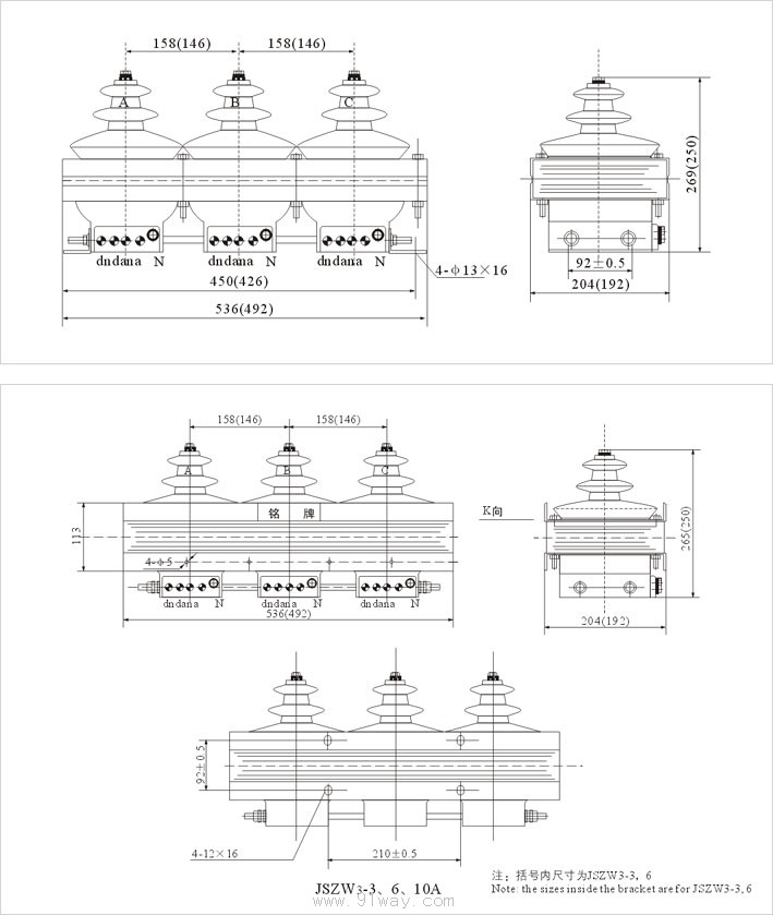 | 產品名稱: | JSZW3-3A,B系列半封閉三相電壓互感器 | |||||