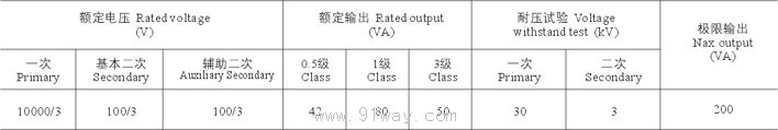 (1)二次線圈接在0.5級額定負荷時為100±10V;