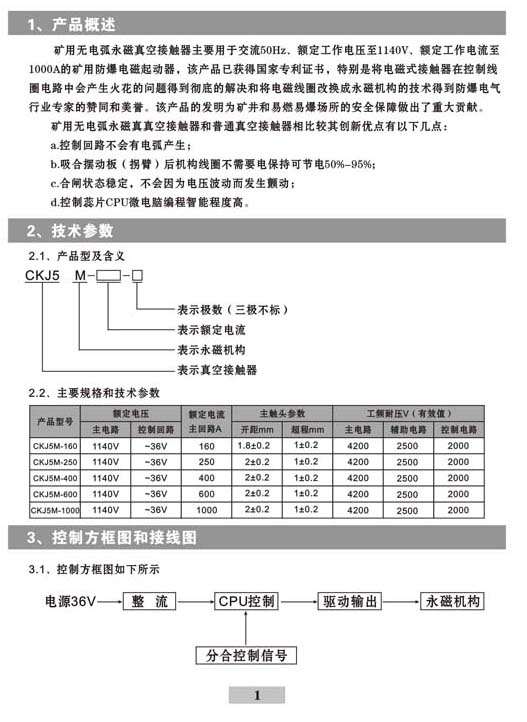 CKJ5M-250A礦用無電弧永磁真空接觸器