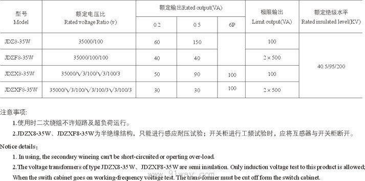 JDZ(X)(F)8-35W系列戶外電壓互感器技術參數 1、環境溫度過: -25℃~+40℃ 2、污穢等級:Ⅳ級。