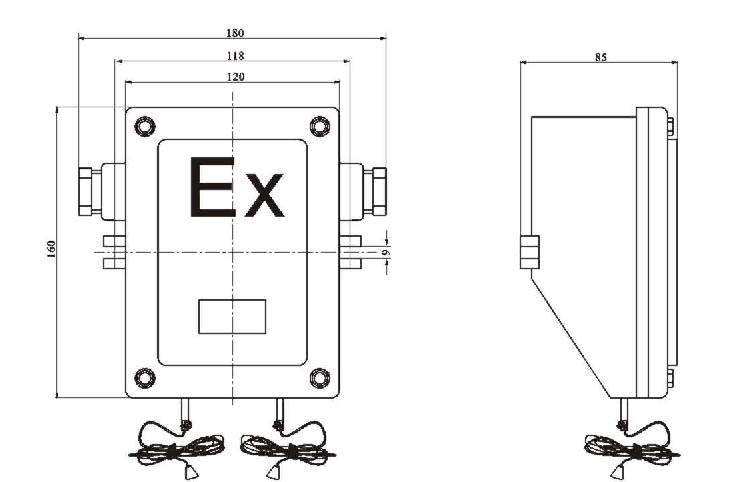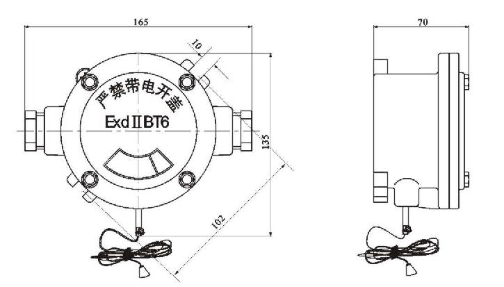 BZM-4系列防爆拉繩開關適用范圍 適用于1區(qū)、2區(qū)危險場所。 適用于IIA、IIB類,溫度組別為T1~T6的爆炸性氣體環(huán)境。 BZM-4系列防爆拉繩開關型號含義 技術參數(shù) 執(zhí)行標準:GB3836.1-2000 ,GB3836.2-2000 ,IEC60079. 防爆標志:ExdIIBT6 額定電壓:AC220V/50HZ 額定電流:4A 防護等級:IP54 防腐等級:WF1 進線口規(guī)格:G3/4 電纜規(guī)格:Φ9mm~14mm BZM-4系列防爆拉繩開關外形及安裝舉例