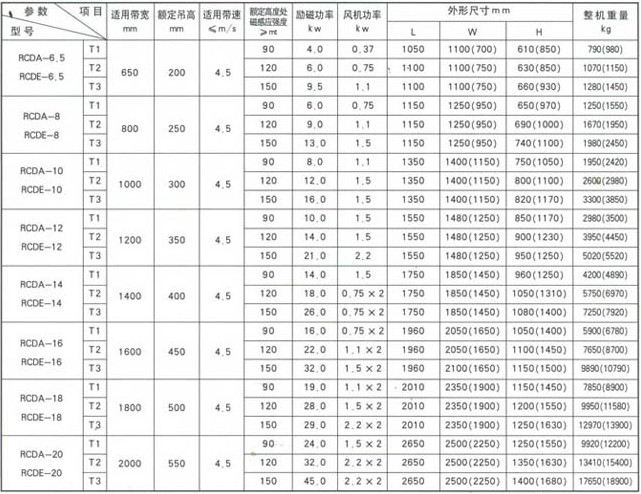 | 產(chǎn)品名稱: | RCDA-T/RCDE-T超強風冷(油冷)電磁除鐵器 | |||||