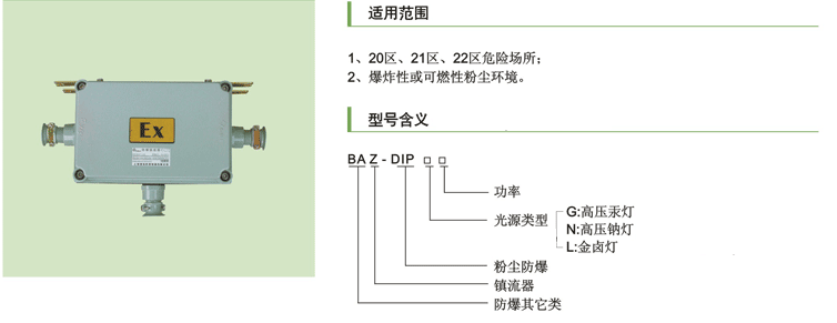 BAZ-DIP系列粉塵防爆鎮(zhèn)流器(DIPA20) 產(chǎn)品說明