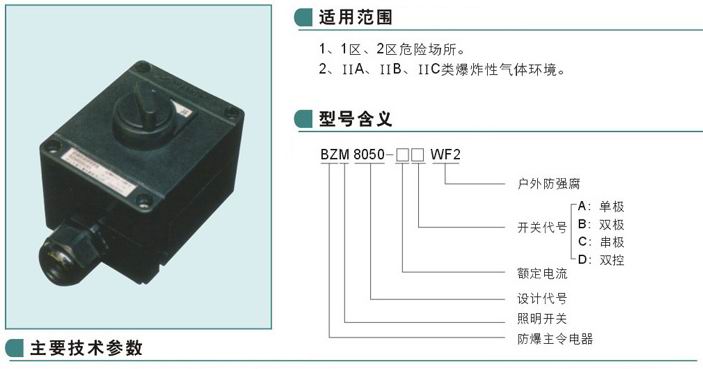 BZM8050系列防爆防腐照明開關(ⅡC)
