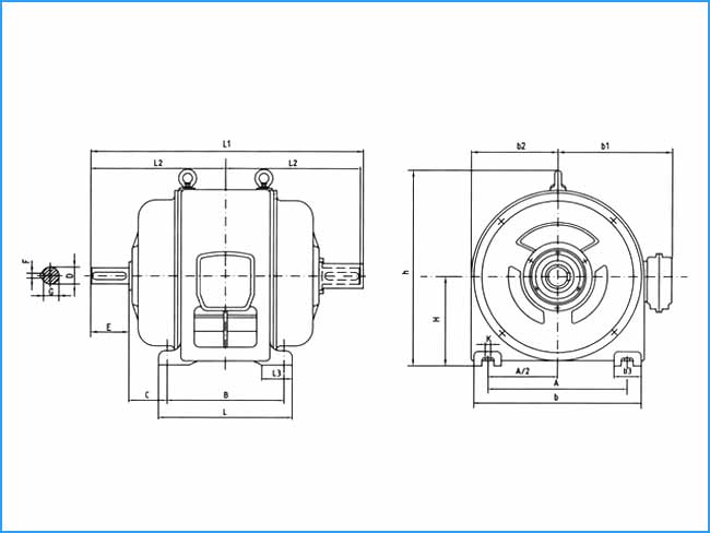 | A | A/2 | B | C | D | E | F | G | H | K | b | b1 | b2 | b3 | L | L1 | L2 | L3 | h | h1 | |