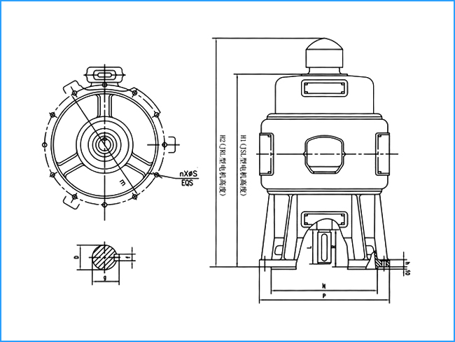 | 額定功率kw | 額定電壓V | 轉(zhuǎn)速r/min | D | L | P | M | N | f | g | R | S | n | H1 | H2 | h | ||||||||||||||||||||||||||||||||||||