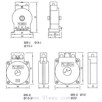 KLH-0.72ø型電流互感器除具備M型的特點外,它的一次側采用直接穿芯的辦法,不須斷開導線,穿芯孔徑分ø8mm、ø12mm、ø15mm和ø22mm四種,穿芯匝數均為1匝。