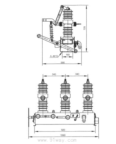 組合電器,采用CTB彈簧操動機構,可實現電動儲能、電動分合閘,也可手動儲能和手動分合閘。