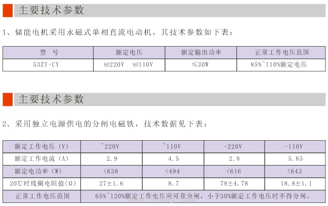65%~120%額定工作電壓應(yīng)可靠分閘, 小于30%額定電壓時不得分閘 | |||