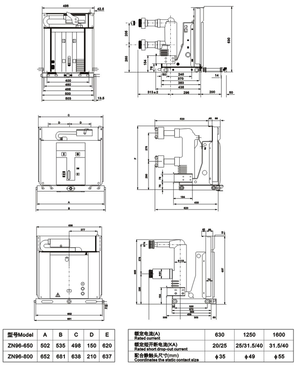 ZN73A-12/D型戶內高壓永磁真空斷路器外形及安裝尺寸