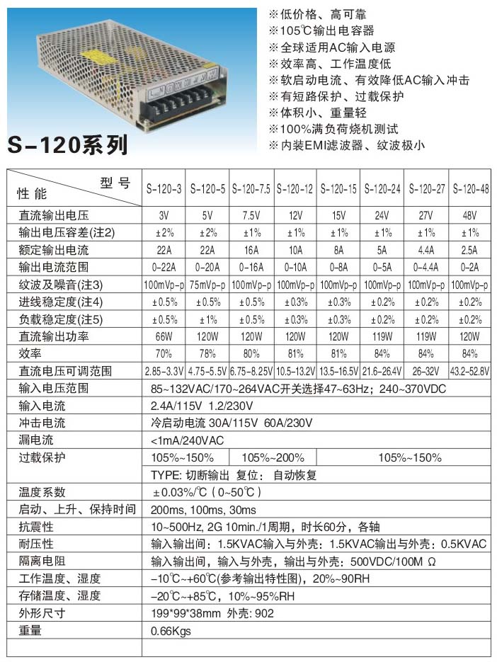 S-120型AC/DC單組電壓輸出開關電源