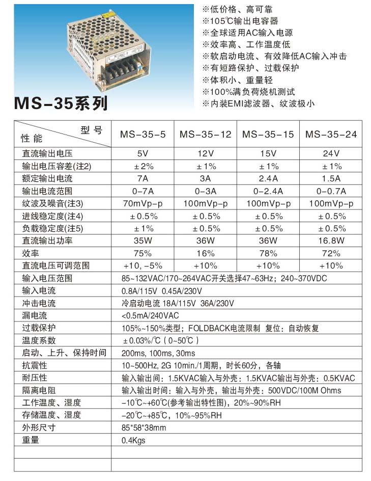 MS-35型AC/DC單組電壓輸出開關(guān)電源